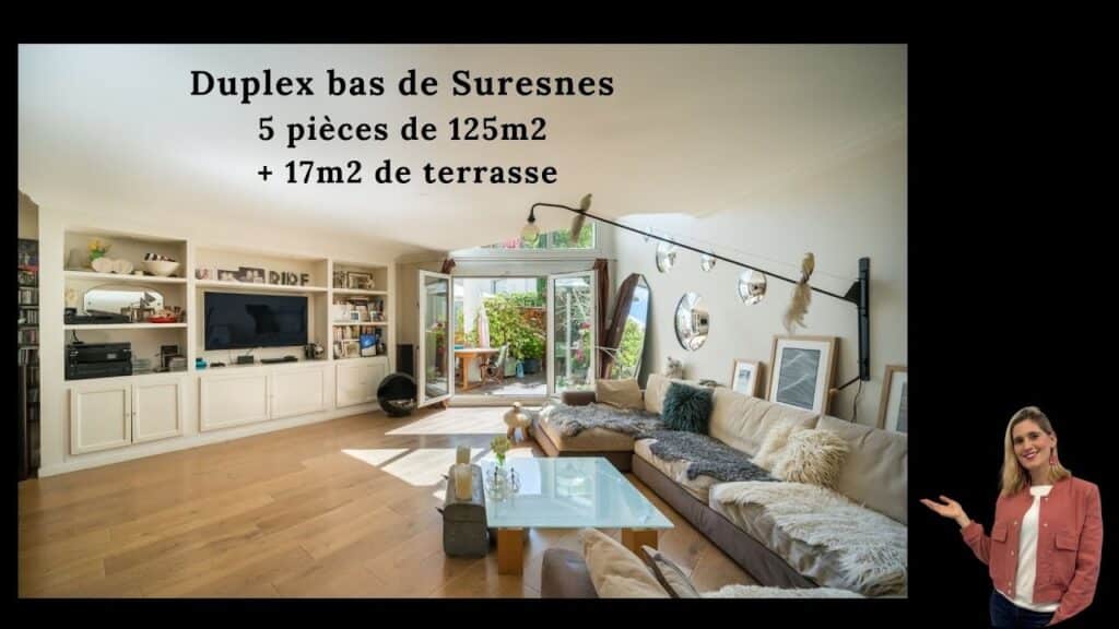 L’auteur a fourni une vidéo de 00:01:30 secondes avec le titre Duplex 125m2 bas de Suresnes à 2 pas du T2, accompagnée de la description suivante :« Venez découvrir cet appartement en Duplex comme une maison de 125m2 avec terrasse de 17m2, à Suresnes dans le quartier Carnot-Gambetta, à 2 PAS DU TRAMWAY T2 Belvédère.